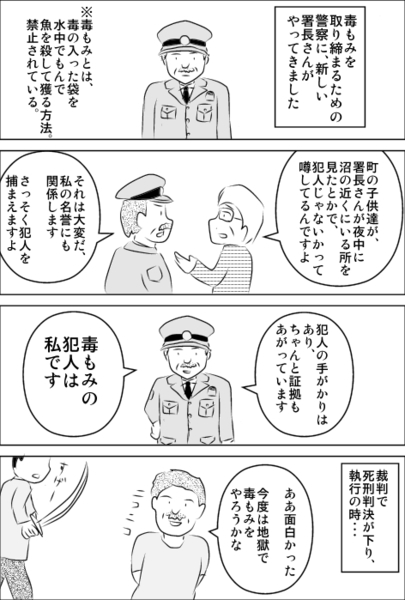| … | 826/04/19(日)19:23:12No.1421913613そうだねx3「署長さん、ご存じでしょうか、近頃ちかごろ、林野取締法の第一条をやぶるものが大変あるそうですが、どうしたのでしょう。」 |