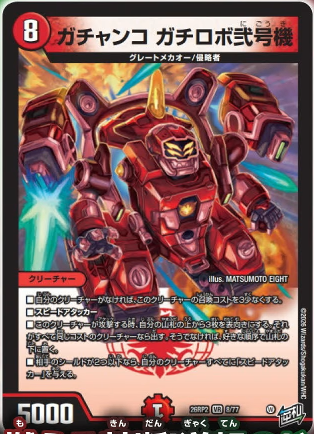 | … | 4126/04/19(日)20:27:45No.1421949890そうだねx1デュエマのことだからガチロボ十三号機とか絶対やり始める |