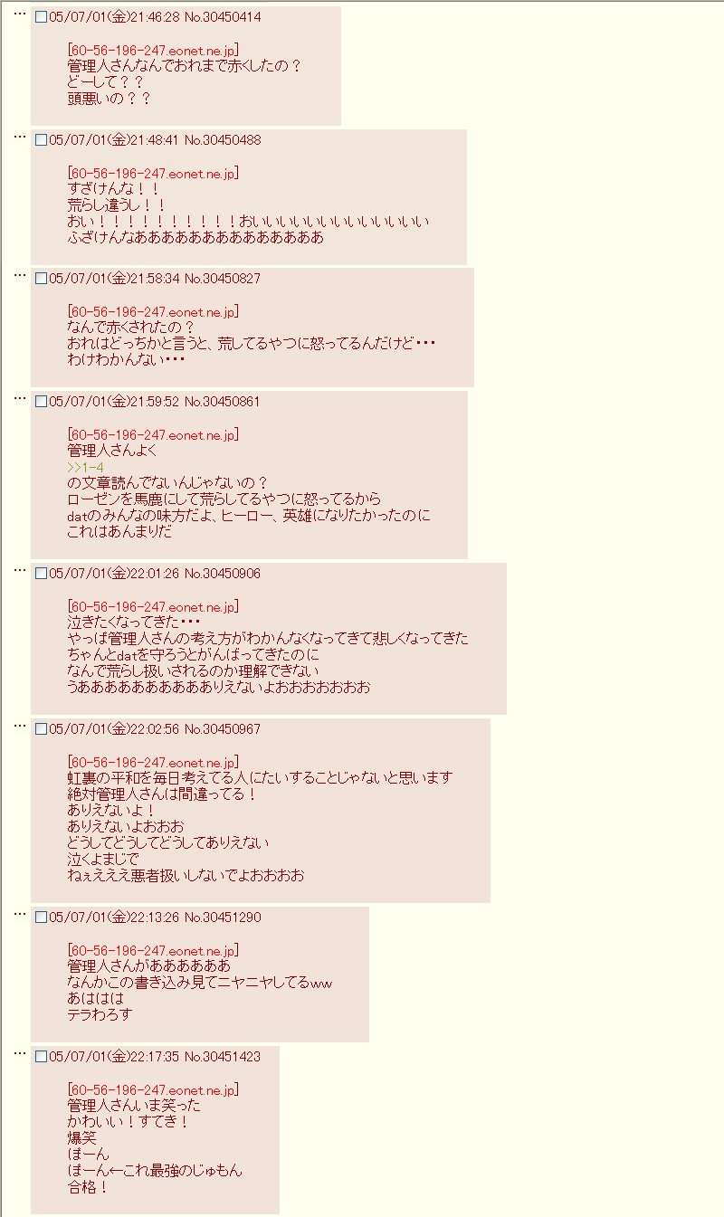 | … | 426/04/19(日)22:07:10No.1421999232そうだねx22まぁ真剣な気持ちで覗く場所ではないよなこんなとこ |