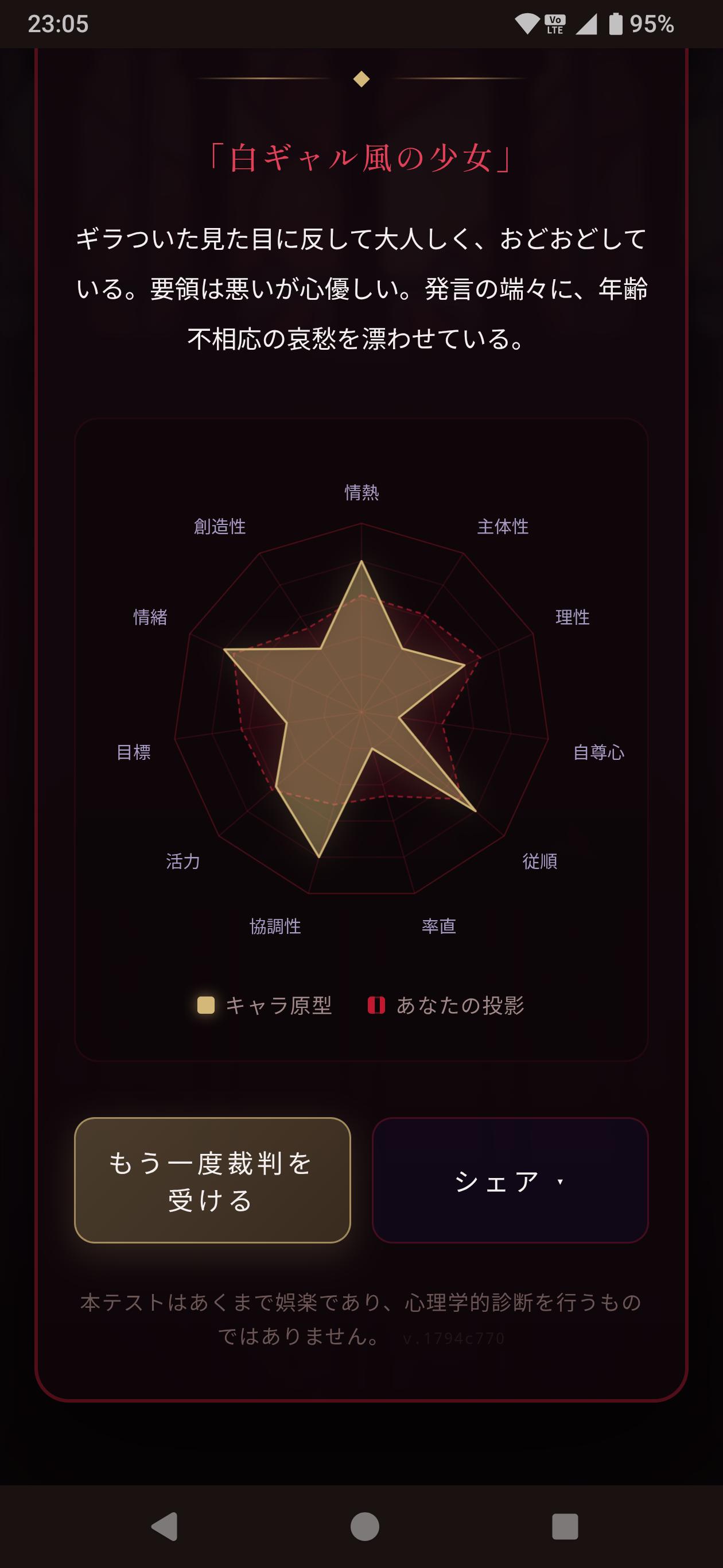 | … | 5726/04/19(日)23:23:40No.1422029465+人には様々な側面があるゲームのキャラで性格診断は難しいと思うよ! |