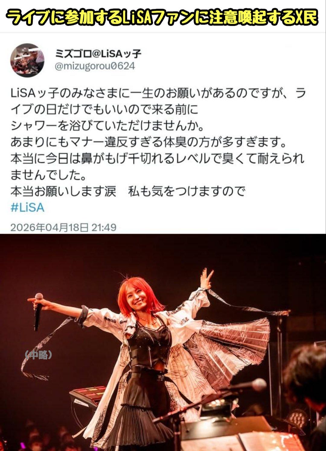 | … | 24126/04/20(月)11:06:33No.1422120972+LiSAのライブ行くならそれくらい覚悟の上だろ… |