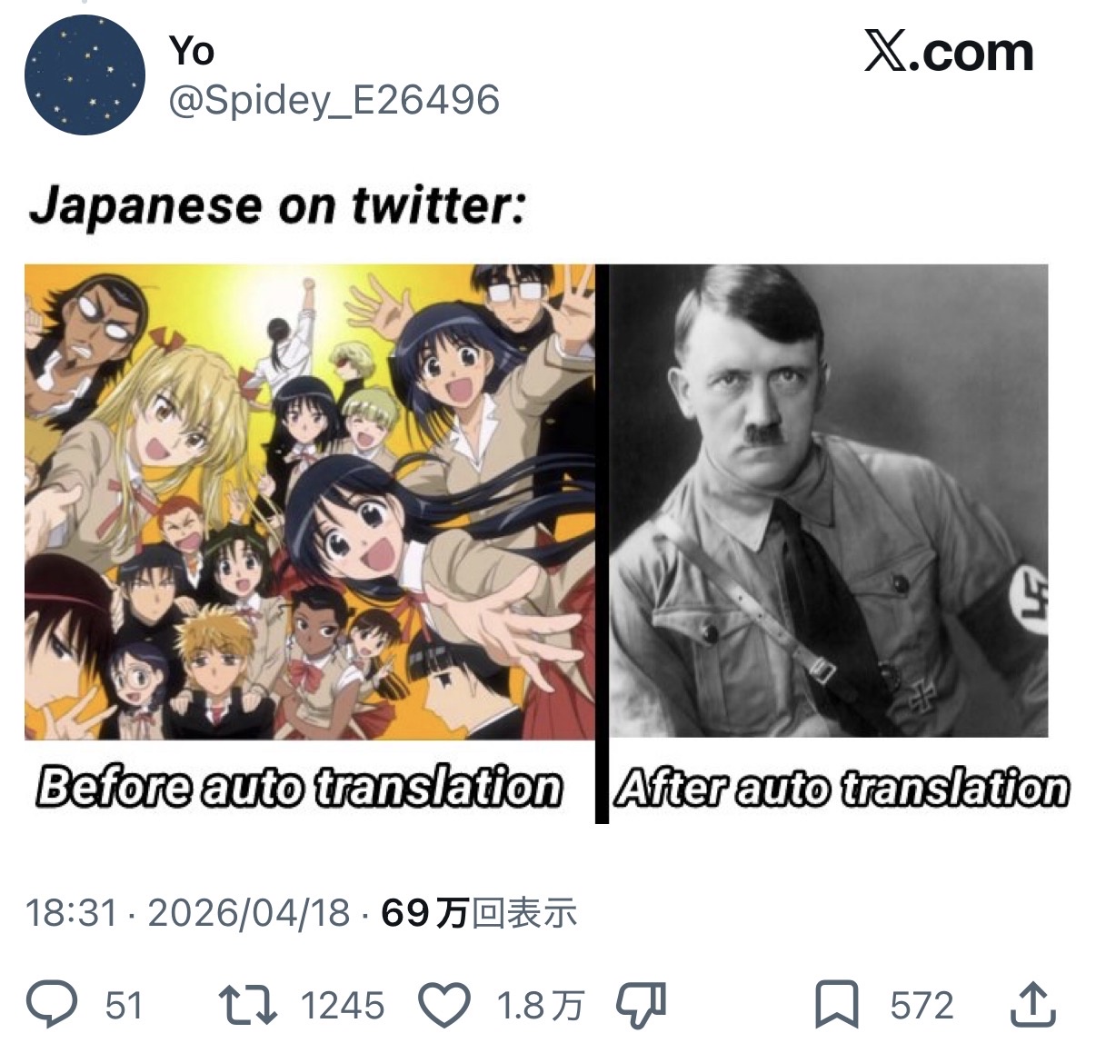 | … | 8926/04/20(月)11:23:31No.1422123992+外人と日本人でリプで解釈の違いが生じてるのを見た |