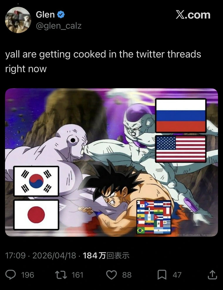 | … | 28426/04/20(月)17:02:16No.1422197081+絵的には悟空とフリーザーが攻撃しているが相手がジレンだと最終的に勝つの日本と韓国側じゃんこれだと |
