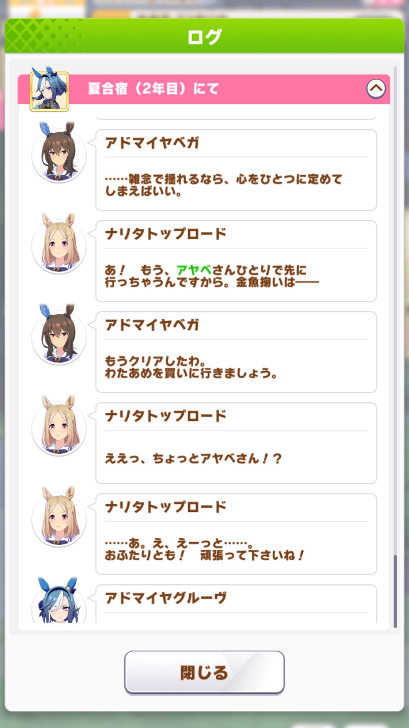 | … | 21426/04/20(月)16:56:13No.1422195103+最近の女帝は孫娘息子が増えて各シナリオやサポカで完全にオカンポジとしてお節介焼いてるのが笑う |