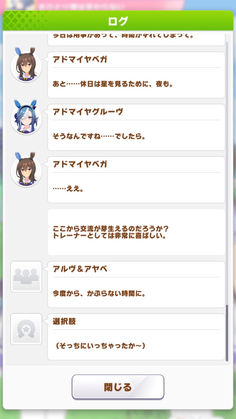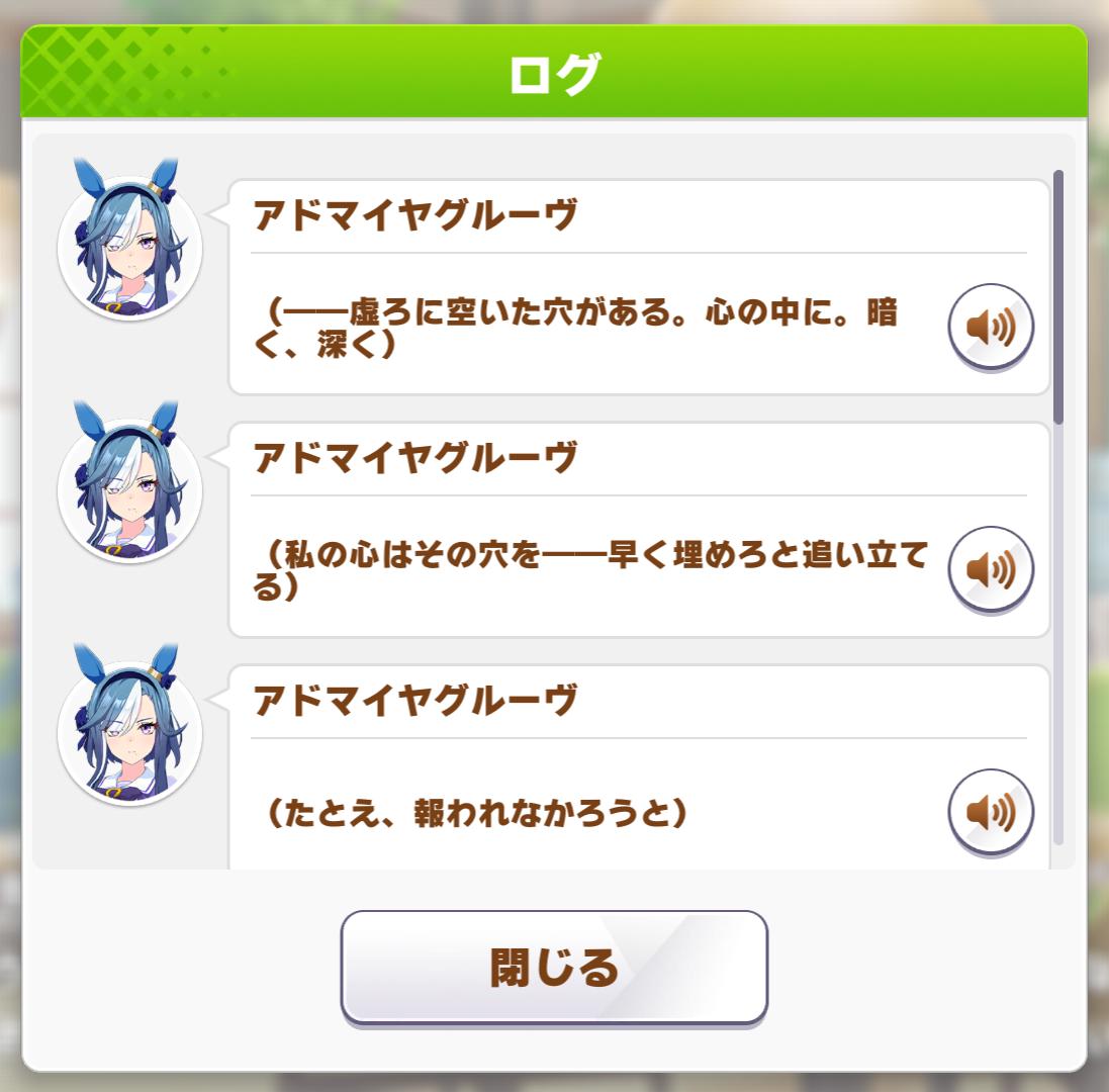 | … | 6626/04/20(月)15:59:56No.1422183970+>デレるという語感でイメージするような感じではないけど終盤とか温泉で見せてくれる信頼感はアドマイヤ的にはかなりのデレかなという気はする |