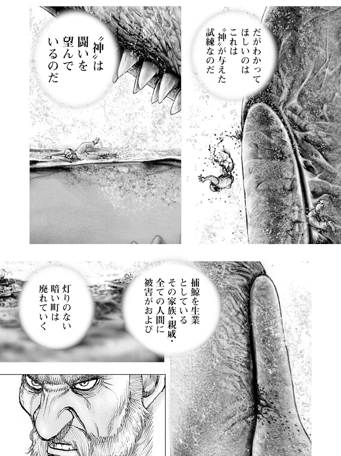| … | 28626/04/20(月)19:49:32No.1422245678そうだねx6序盤で白鯨に海中であの濁った目で見られてる見開きの迫力は個人的に漫画で身震いした数少ない体験のひとつなんだよね |