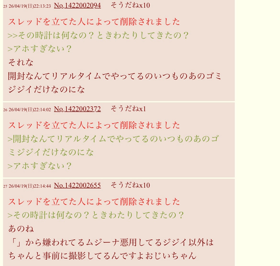 | … | 8026/04/20(月)22:41:08No.1422310563+書き込みをした人によって削除されました |