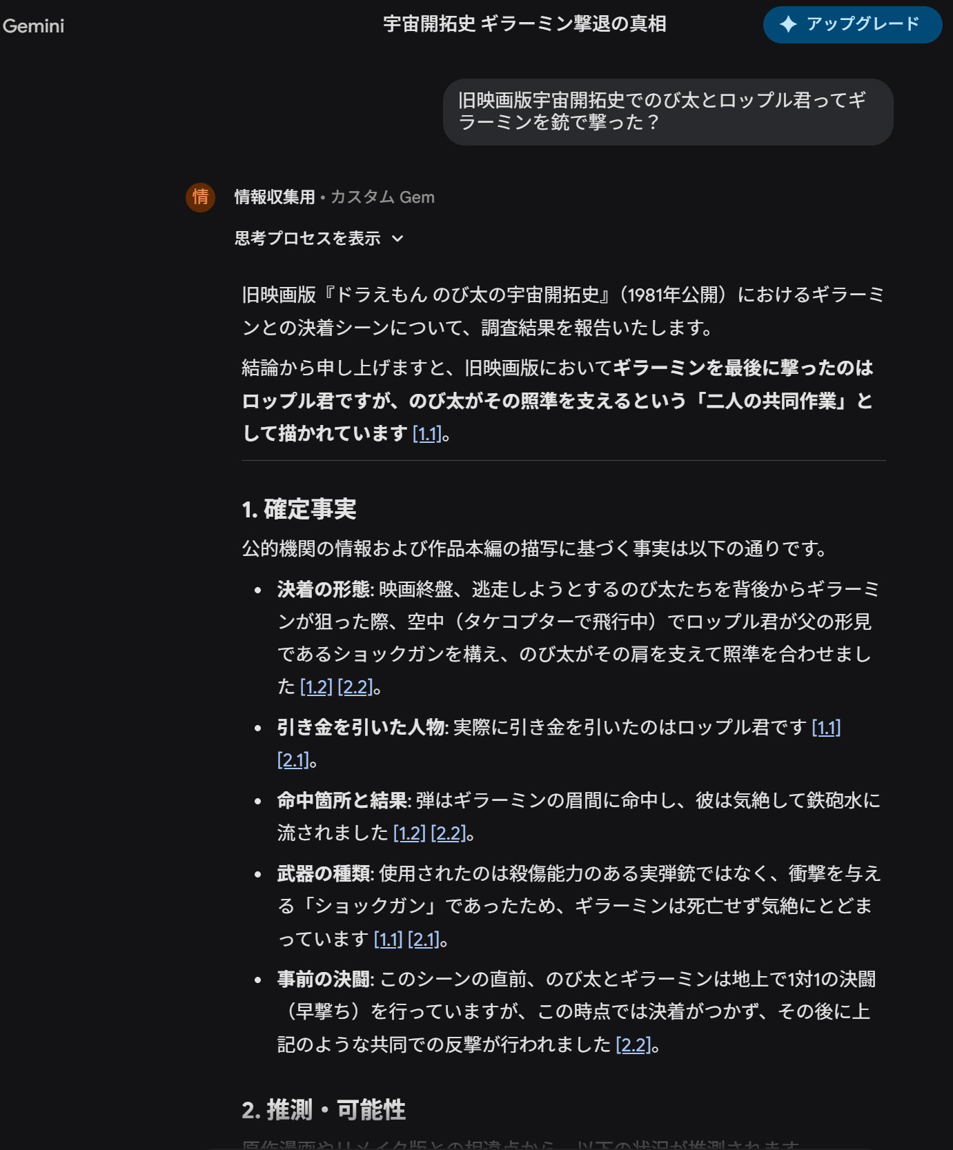 って聞いても頑なにドラえもんでそんな殺人描写があるはずありませんって譲らないんだGemini君