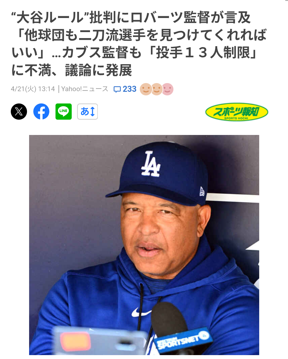 | … | 1826/04/21(火)20:55:42No.1422557132+ドジャースだけの特別ルールとか言ってるのはどれくらい本気で言ってるんだろうか |