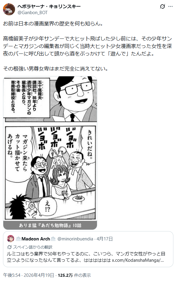 | … | 1226/04/21(火)21:44:43No.1422577648そうだねx1パワハラセクハラゴリゴリの男社会(少女漫画界以外)だから女性差別もあったし弱いもの虐めもあったとしか |