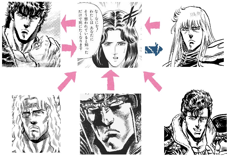 | … | 3826/04/21(火)23:56:23No.1422622819+こうして見るとジャギからはユリアに全然矢印向いてないの少し面白いな |