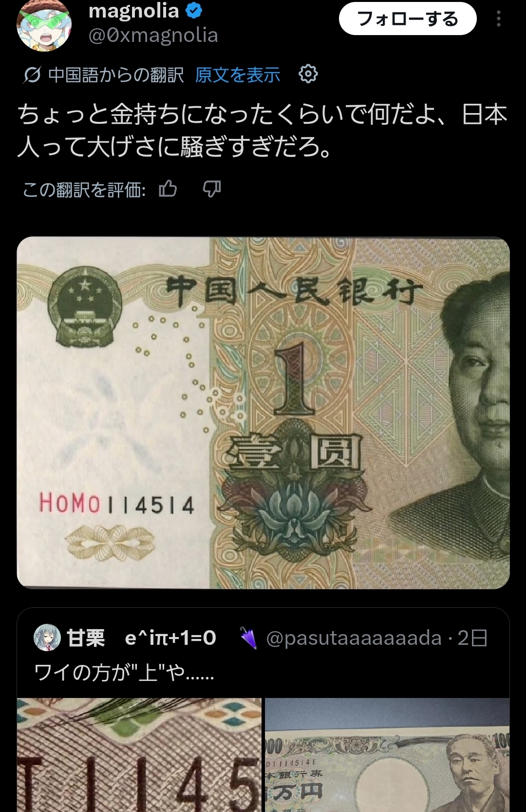 | … | 3426/04/22(水)10:12:30No.1422691539+114514人民元で売れそう |