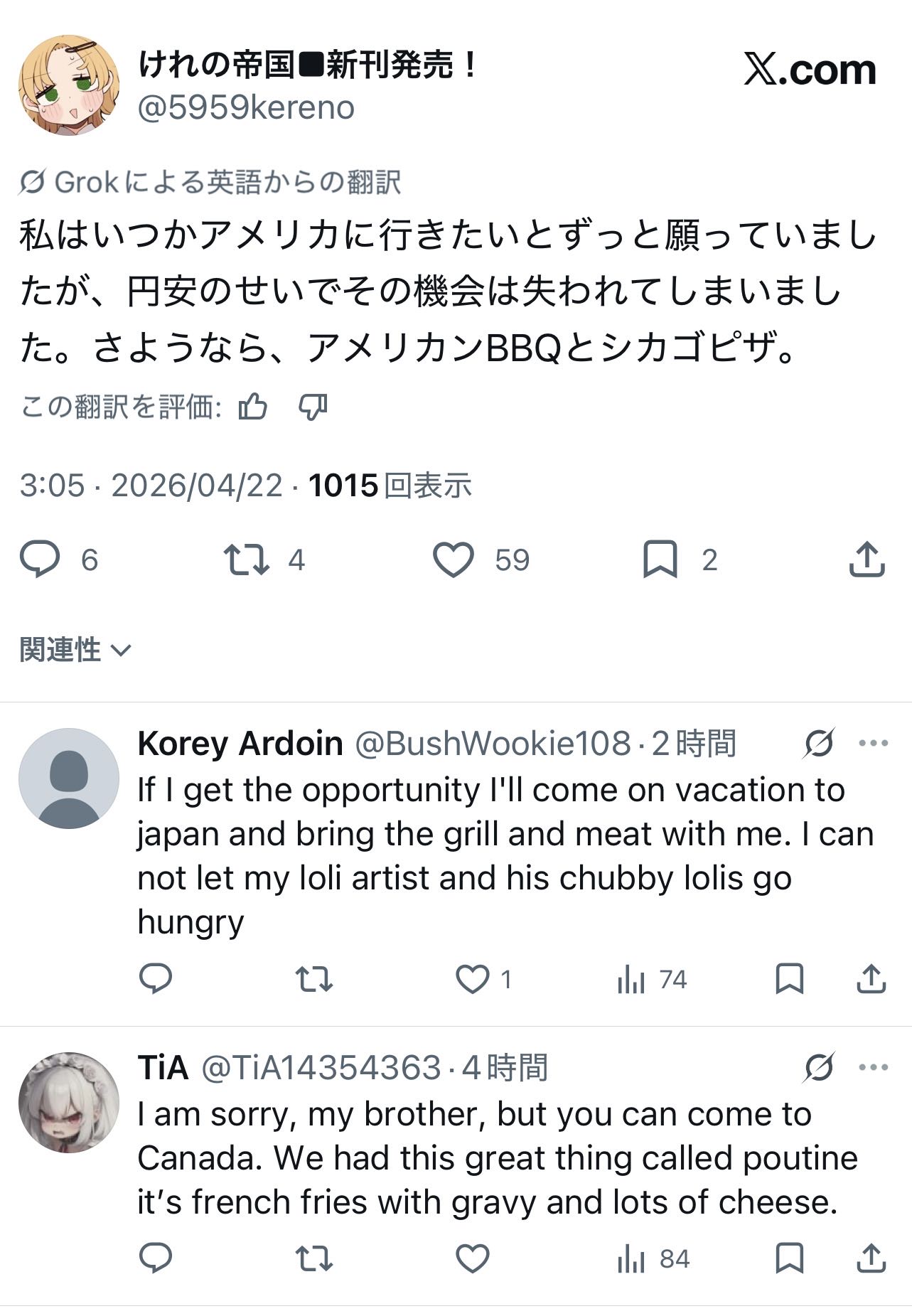 | … | 4726/04/22(水)11:49:56No.1422709300+円安で色々苦しいっていうのは創作してる人はあんまり言わない方がいいと思う |