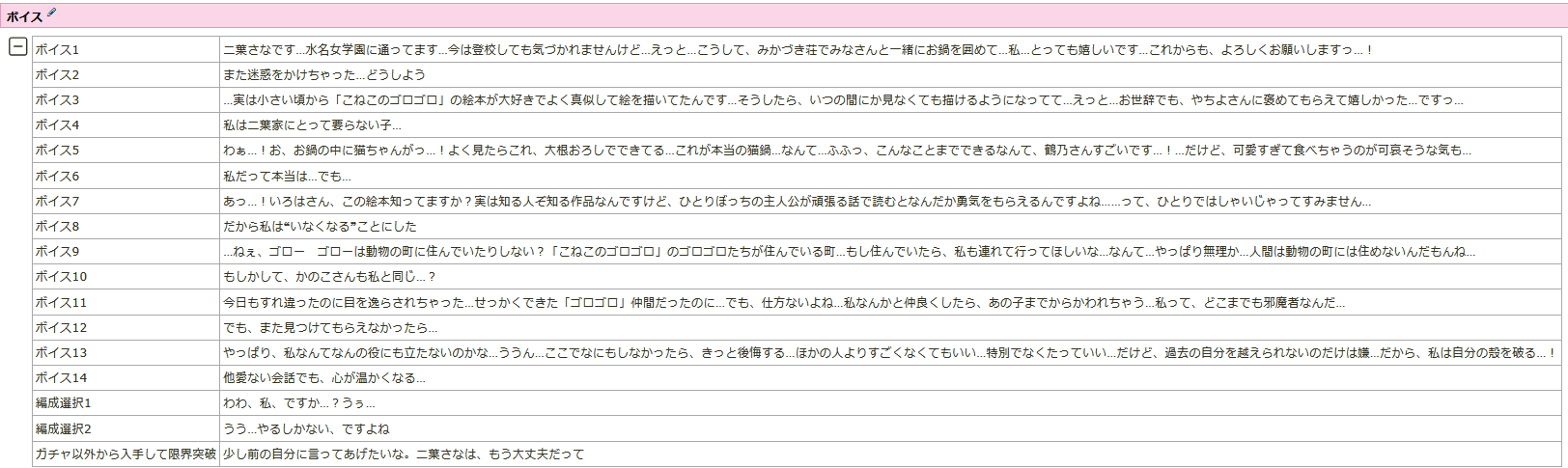 | … | 20826/04/22(水)13:47:56No.1422742110そうだねx3レアボイスだけど一部キャラは実装時の紹介ムービーで使われてたりする |