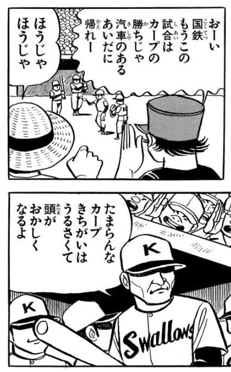 | … | 20326/04/22(水)13:24:01No.1422736686+>この頃はアメリカ占領下だったしカープも下手するとアトムズになってたかも知れないんよ |