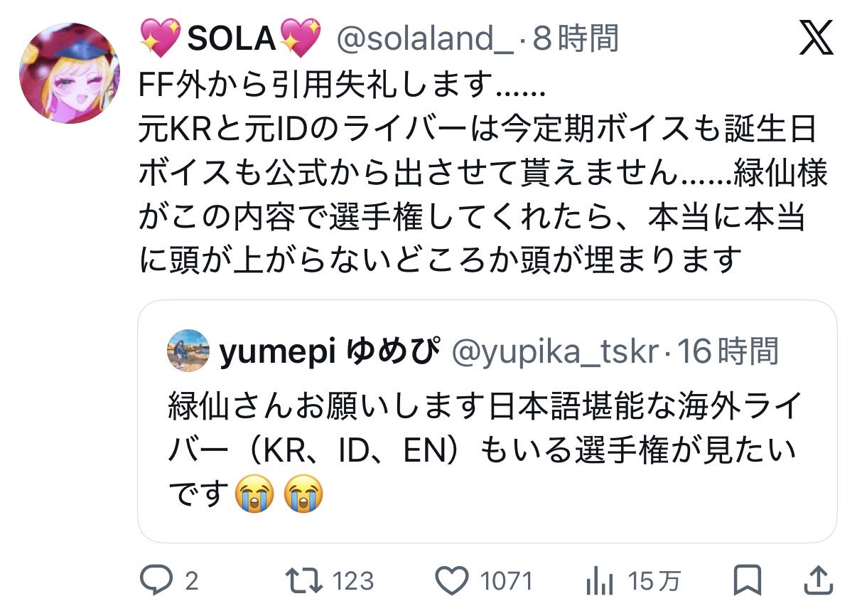 | … | 326/04/22(水)13:59:37No.1422744717そうだねx4にじさんじになにかあった? |