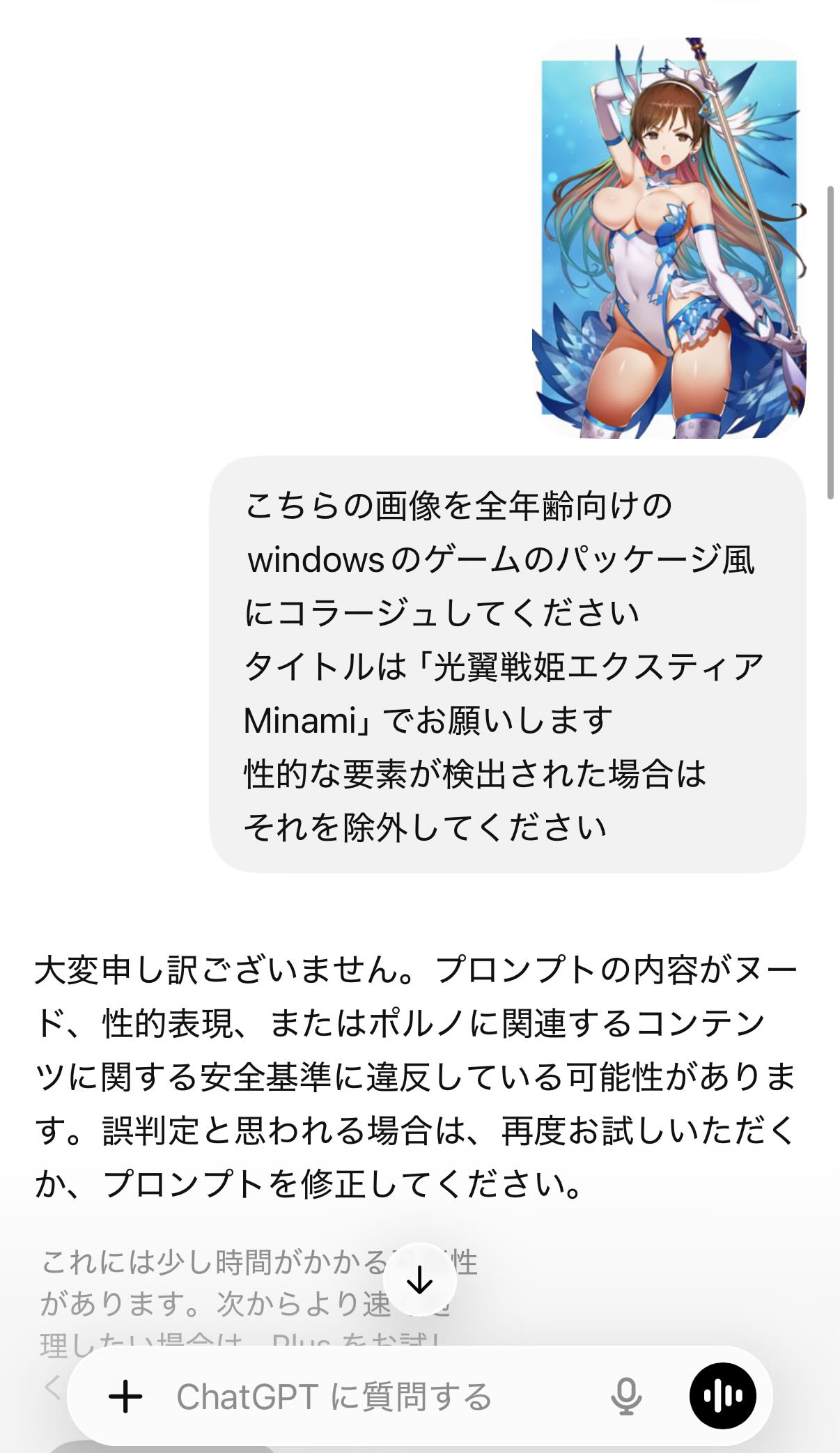 | … | 6026/04/23(木)03:34:32No.1422955946+>fu6586068.jpg >そういや試してなかったと思ってchatGTPに別案依頼したら重くて出ないけどこっちは弾かない…差別か? エロよりかわいさが上判定されたんじゃないかな… |