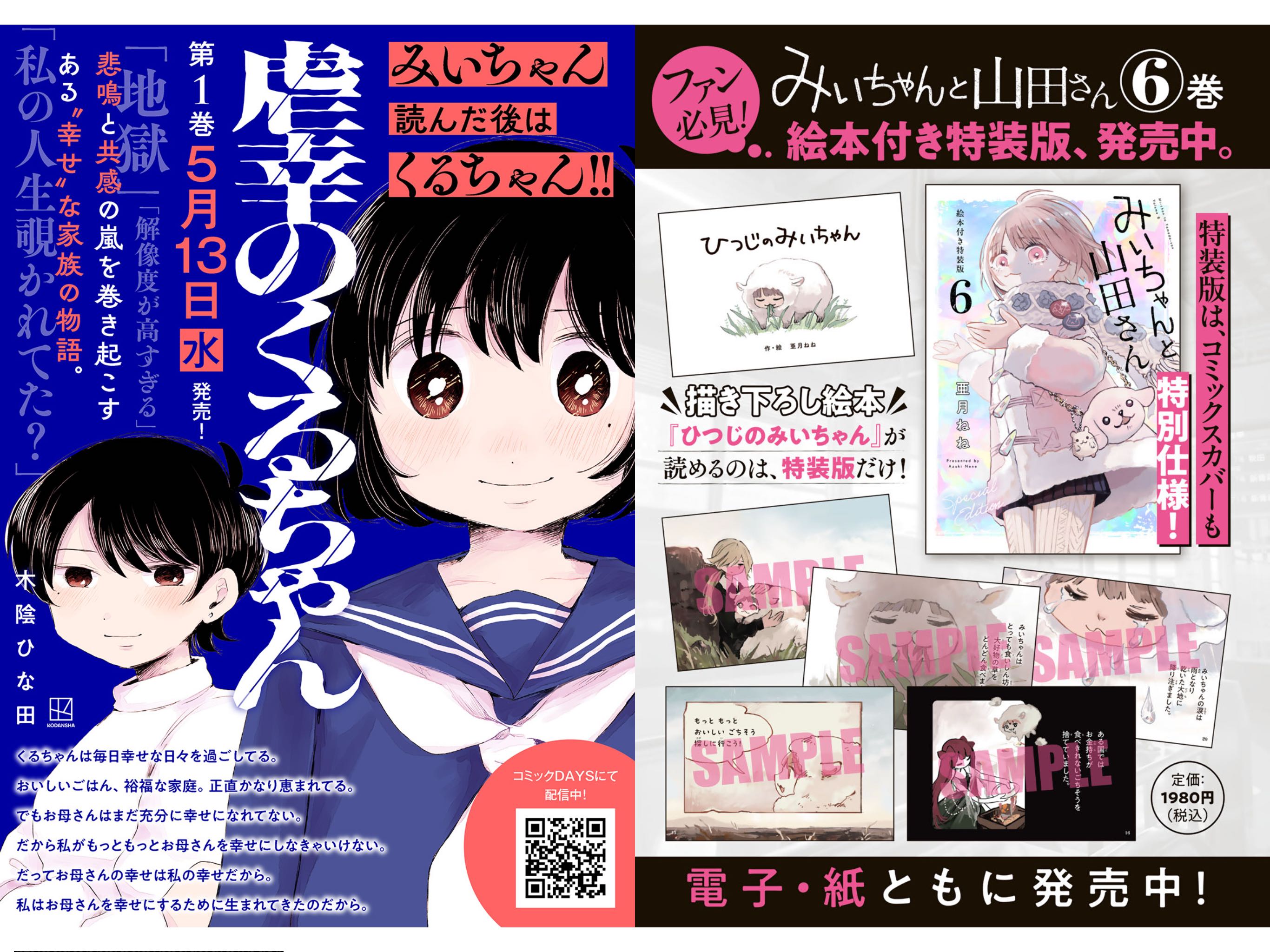 | … | 17526/04/23(木)04:55:45No.1422958279+タコピー終了からみい山開始まで大体2年だからまた2028年くらいにSNSをざわつかせる漫画出てくるかもな |