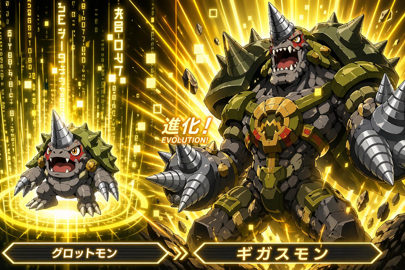 | … | 326/04/23(木)09:50:28No.1422986892そうだねx1チャットGPTのイラスト機能パワーアップしたと聞いて「グロットモンがギガスモンへスライドエボリューションする画像」作って貰ったよ |