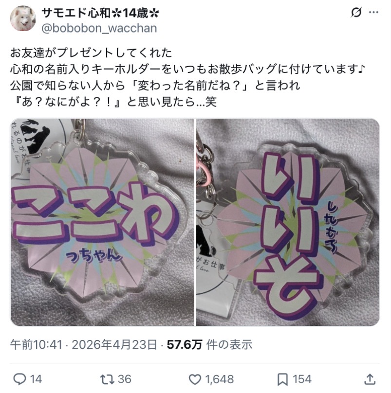 | … | 5426/04/23(木)17:54:31No.1423086680+>令和のバカ親って「サモエドここわ」が「普通の名前」感覚なんだな… |