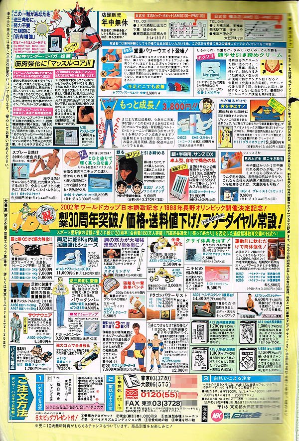 | … | 17626/04/23(木)22:08:17No.1423174714+昔のジャンプとかって広告で筋トレ器具とか手裏剣とか載ってなかった? |