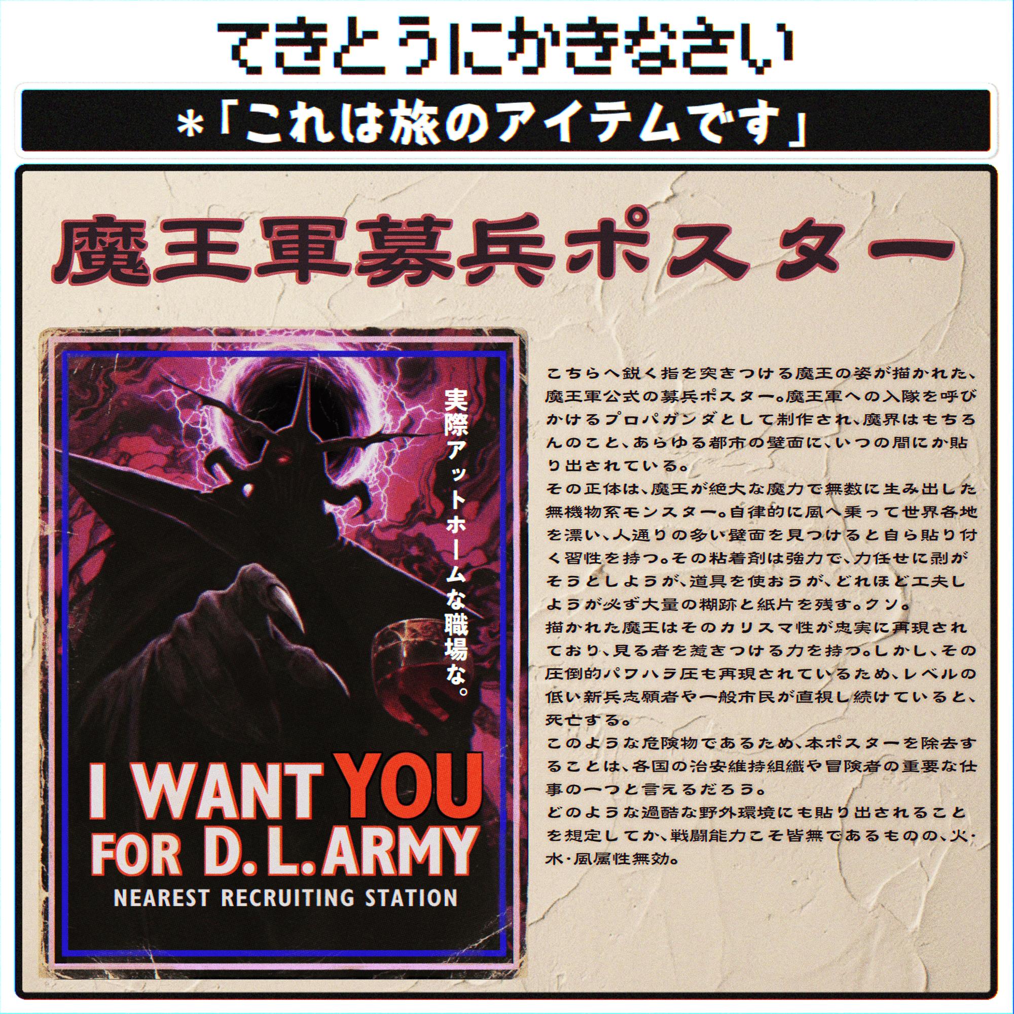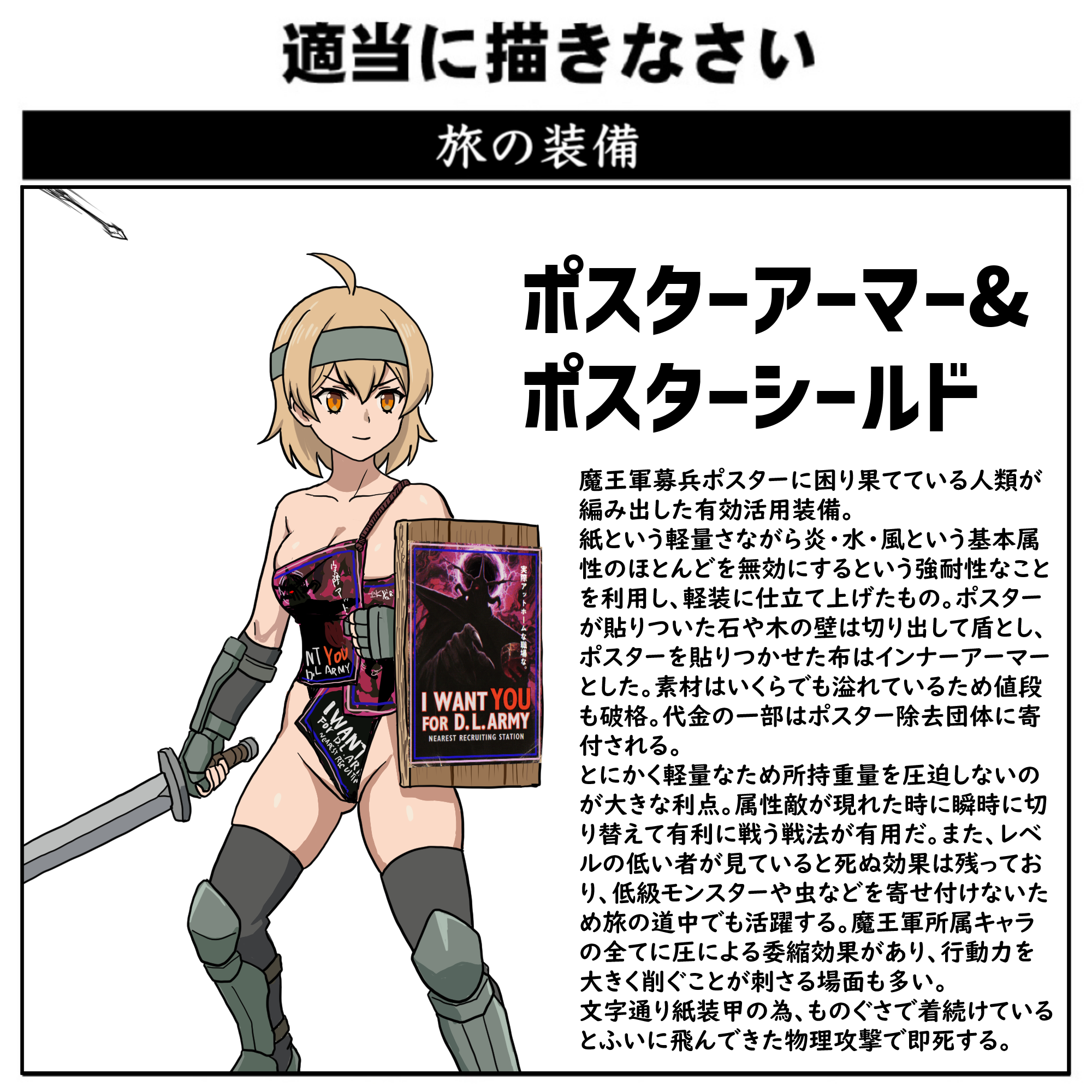 | … | 7526/04/23(木)22:50:00No.1423188857+鎧の上からこのクソポスターを前掛けとして装備しちゃあかんか…? |