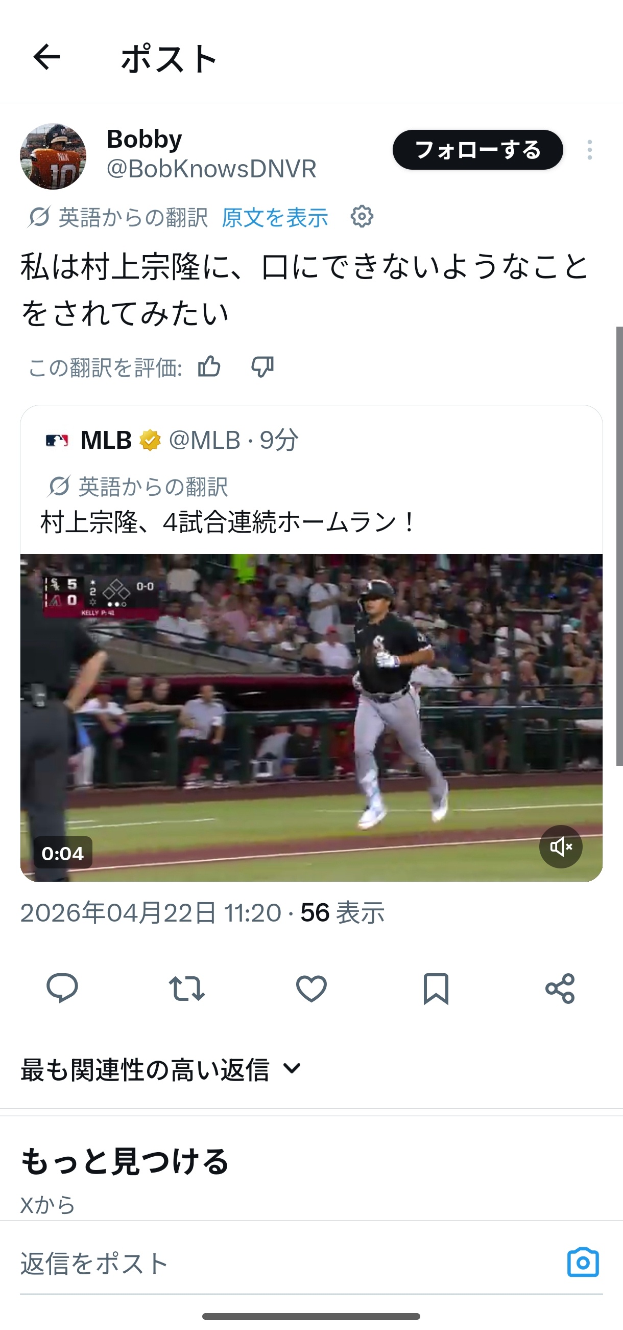 | … | 36026/04/23(木)23:22:17No.1423199302そうだねx2>MLBがめっちゃ楽しい |