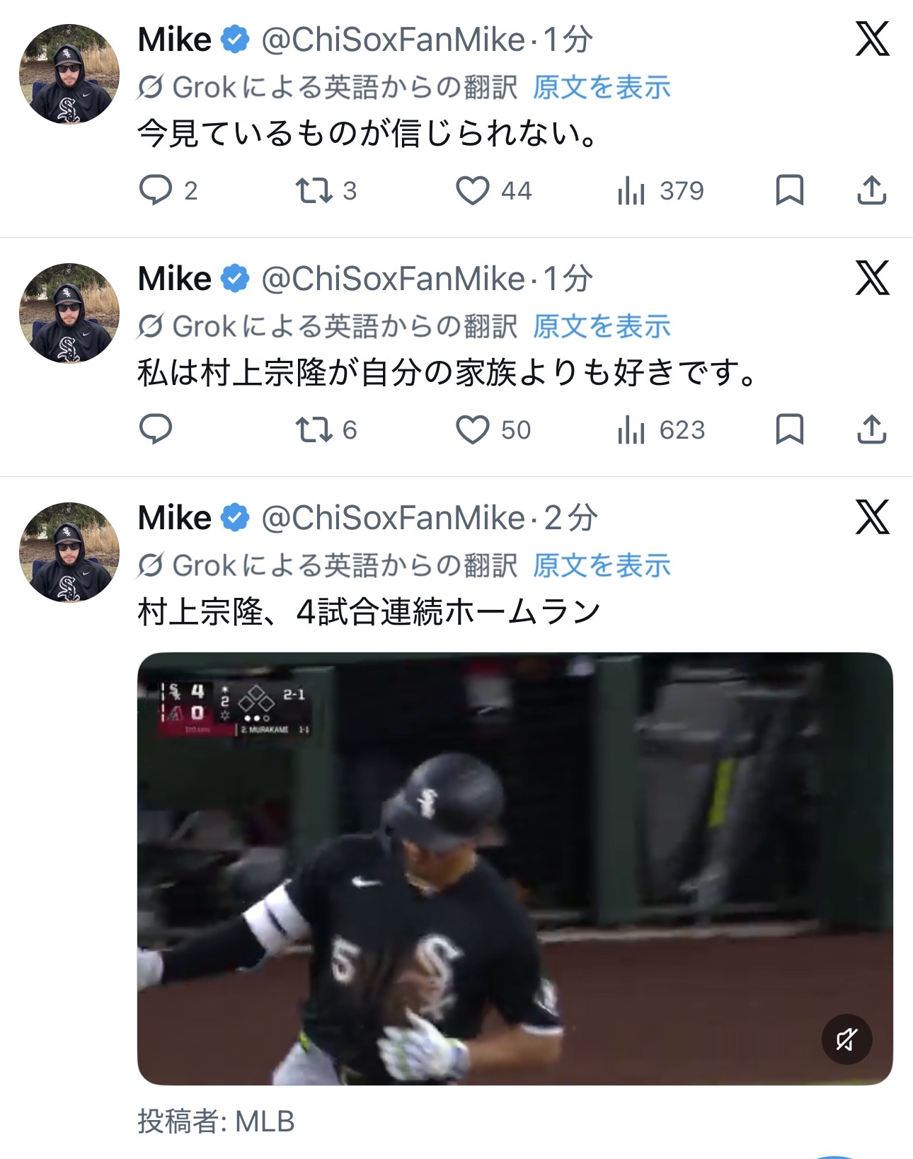 | … | 36126/04/23(木)23:22:29No.1423199373そうだねx2>MLBがめっちゃ楽しい |