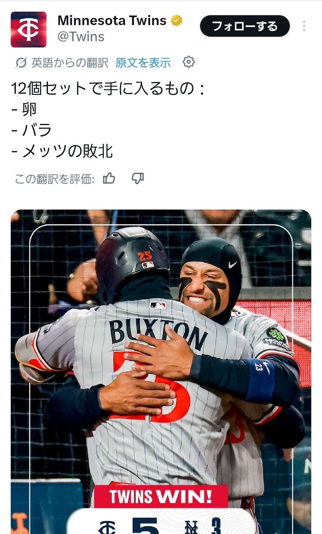 | … | 31526/04/23(木)23:09:42No.1423195446+>なんかうちにjapanで三冠王取ったやつがくるらしいぞ!!は??マジで??みたいな事があったんだろうなて記事 |