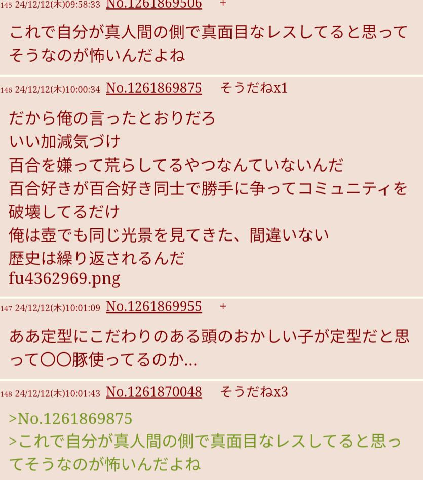| … | 5226/04/24(金)03:28:48No.1423241471そうだねx4百合嫌いおじさんやっぱわたなれも荒らしてるんだね… |