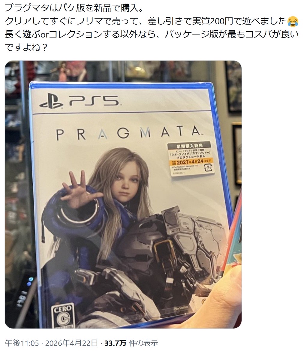 | … | 85526/04/24(金)11:04:06No.1423281838+>元々発売前からPS版はヨドバシその他で軒並み品切れだったから中古需要自体は高そう |