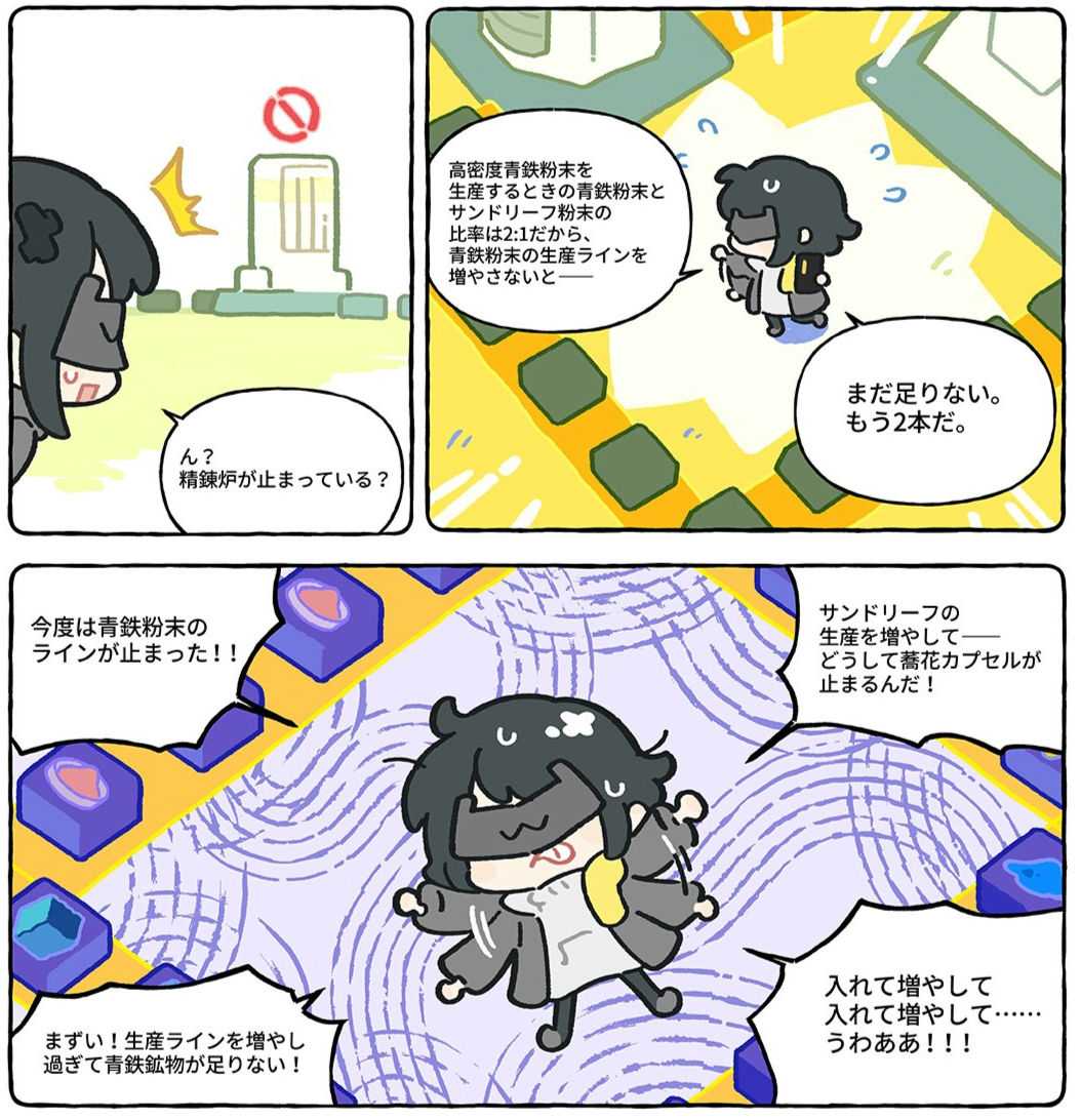 | … | 3326/04/24(金)13:59:23 ID:LLNXIjDsNo.1423322867+精製なら4ラインの化学反応炉使った方が簡単ンィー |
