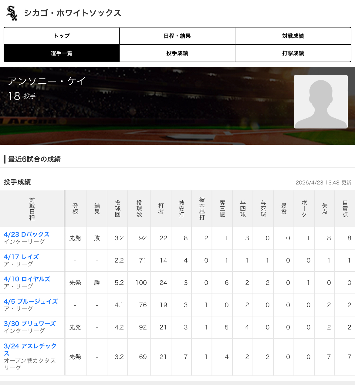 | … | 6326/04/24(金)12:39:28No.1423304022+>今年のホワイトソックス今ア・リーグ全体で見てもそこまで酷くない方だからな |