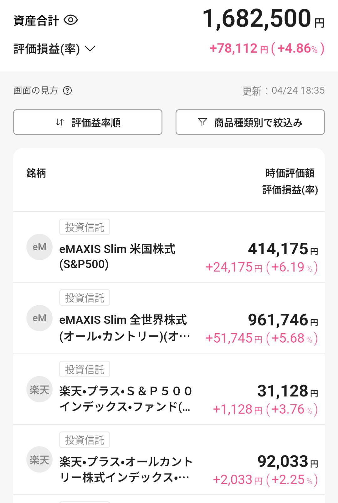 | … | 1926/04/24(金)17:02:31No.1423356784+余剰資産でオルカン買って1割とか2割とか増えてるのを見てニヤニヤしてるだけだったけど |