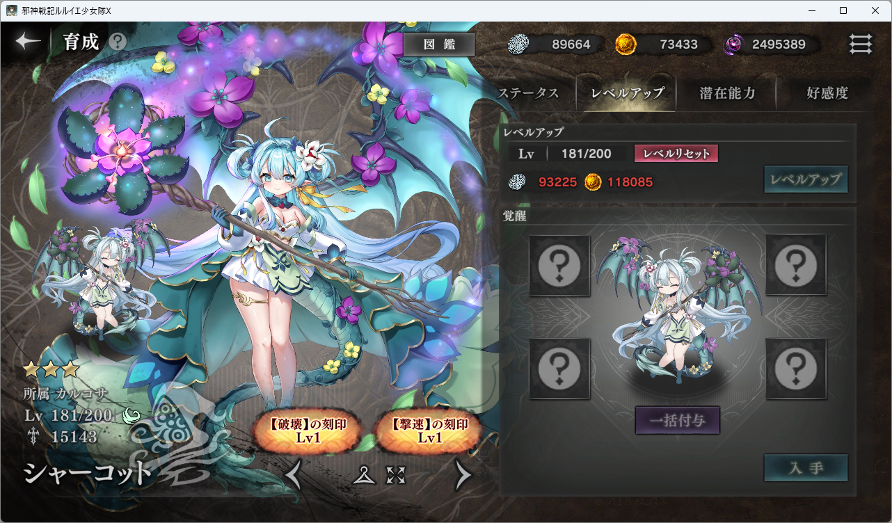 | … | 35926/04/24(金)19:33:15No.1423399091+>攻撃速度が必要なくて攻撃も耐久も欲しいルルイエちゃんにはちょうどいいけど他は誰が使えるか分かんないのだ |