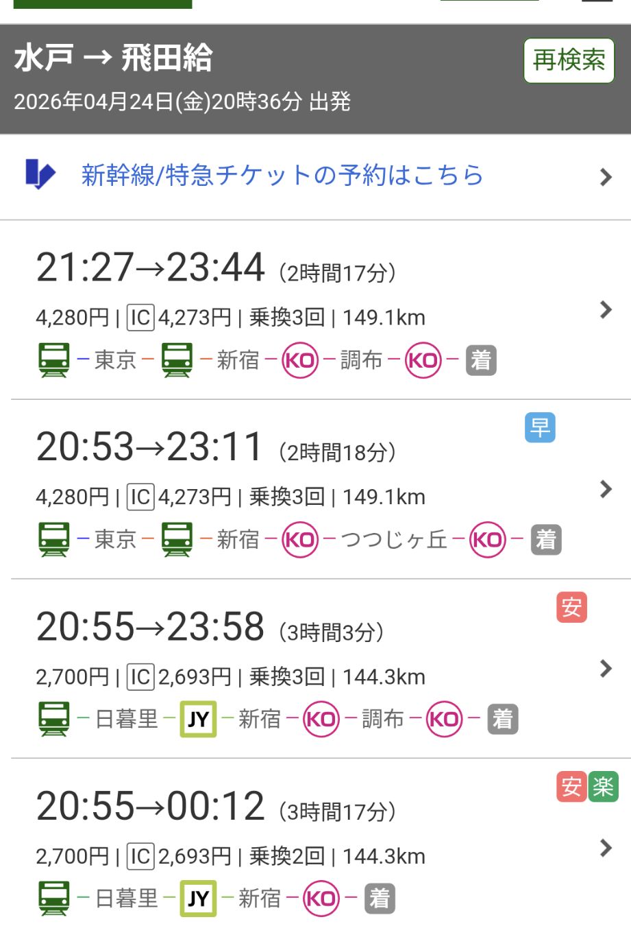 | … | 7626/04/24(金)20:38:03No.1423426014+調布から水戸は3時間くらいかかるんじゃなかったかな |