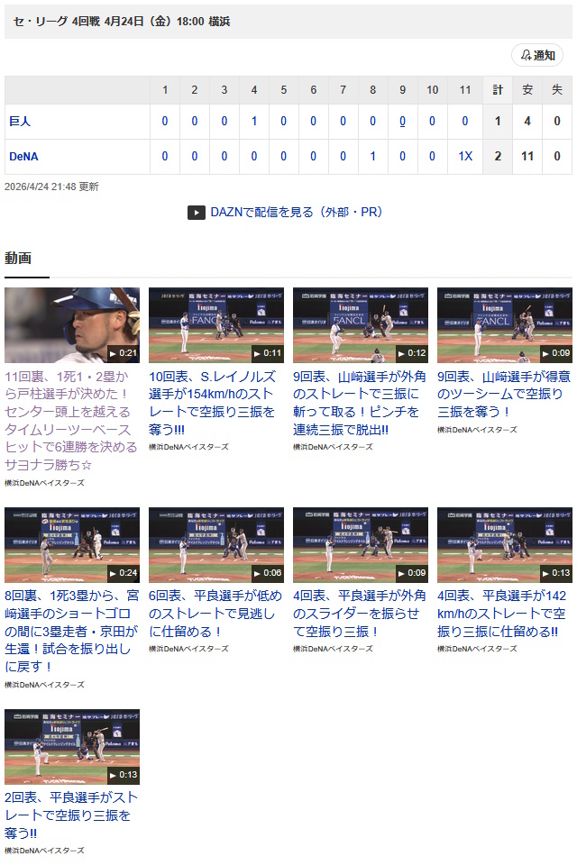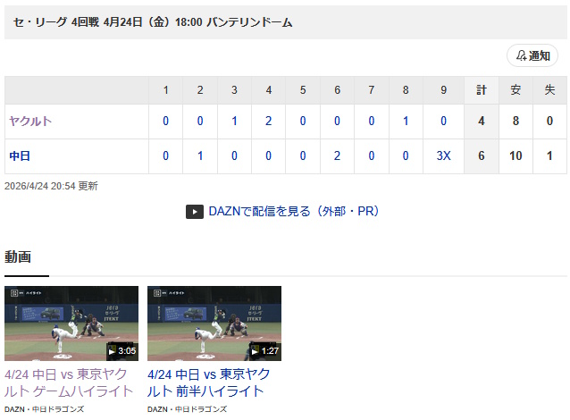 | … | 7726/04/24(金)23:04:51 ID:EUBEEp1QNo.1423493069そうだねx3https://x.com/DAZNJPNBaseball/status/2047635430229651704 |