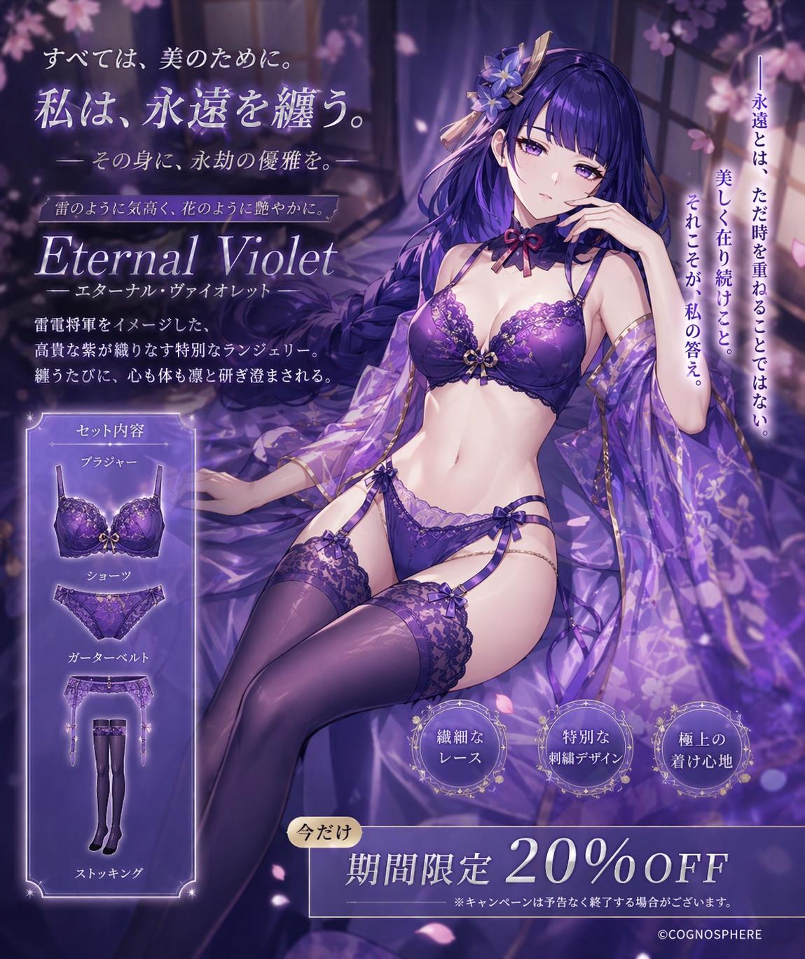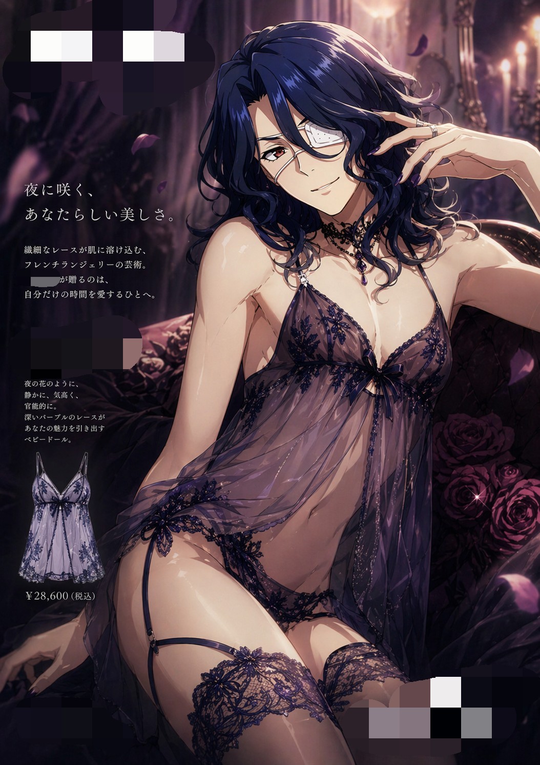 | … | 23126/04/24(金)23:59:56No.1423513213そうだねx2キャラが架空のランジェリーを宣伝する画像を作ってください |