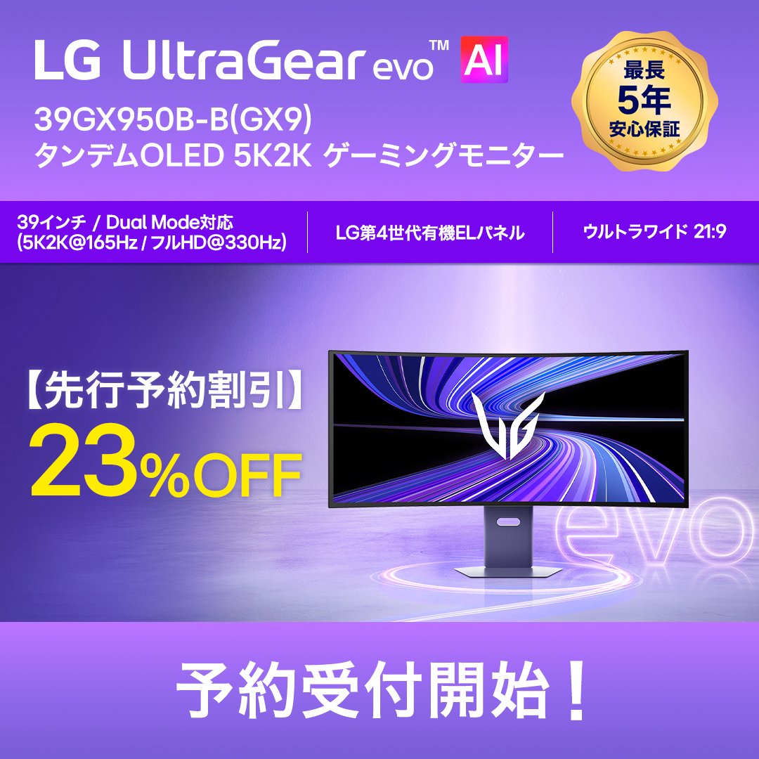 >「39GX950B-B」を予約購入いただいたお客様におかれましては、