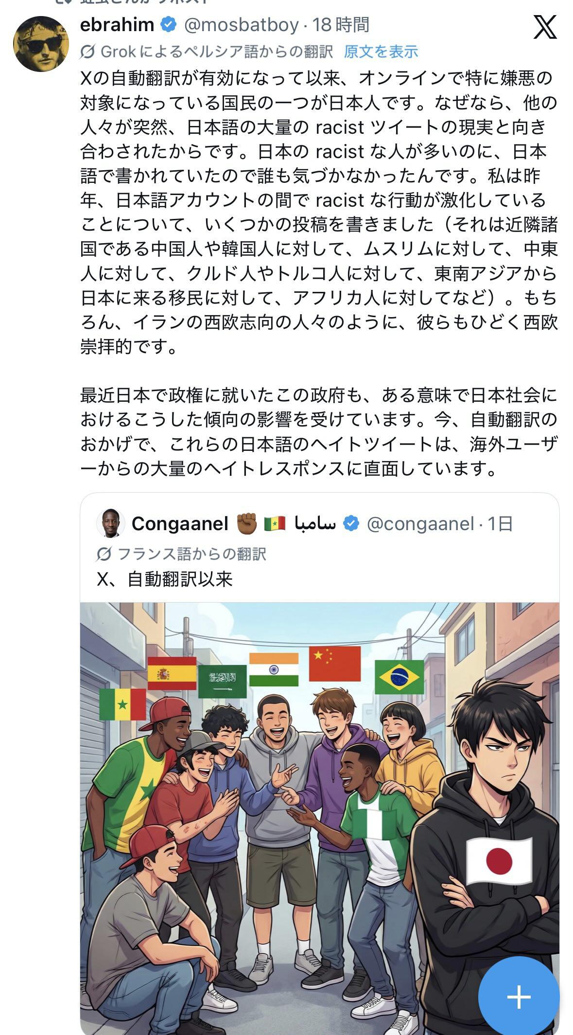 | … | 10226/04/25(土)06:50:11No.1423561112そうだねx1自動翻訳機能つけたイーロンもまさかここまで日本人の本性がバレるの予想してなかっただろうな |