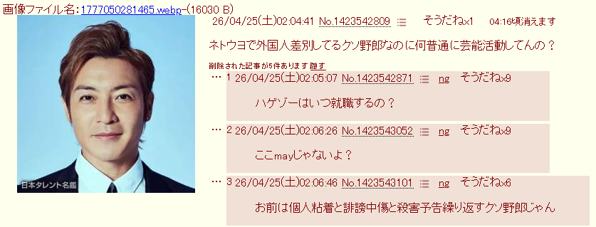 | … | 1026/04/25(土)04:33:28 ID:kVPqLFCENo.1423554013+ばにたす… |