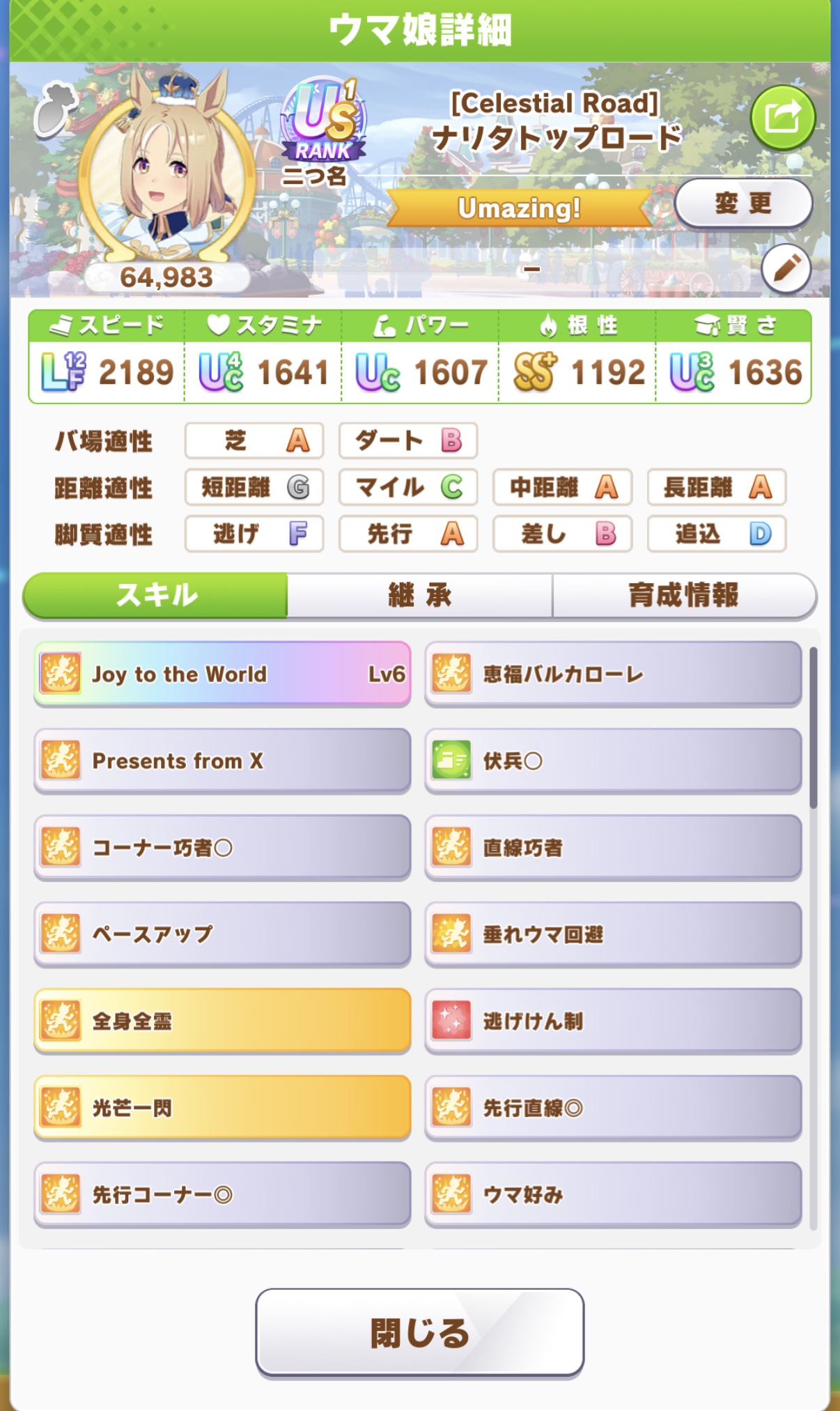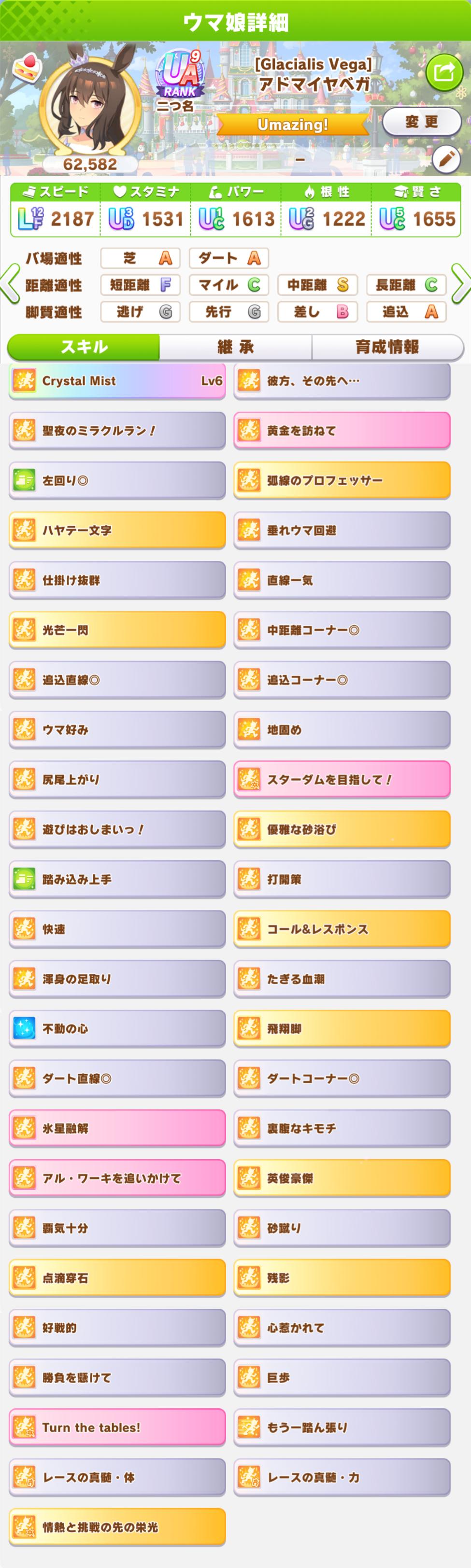 | … | 126/04/25(土)08:23:53No.1423570460+中距離Aだからダート適性いじりゃ行けるけどさぁ |