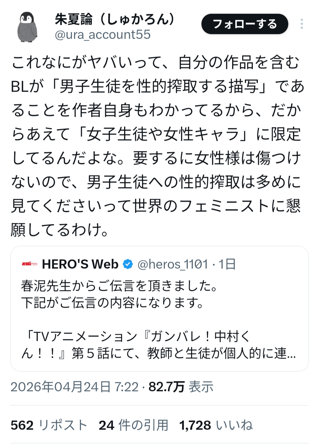 | … | 226/04/25(土)10:59:19No.1423598658そうだねx14男への性的搾取はOKだった…? |
