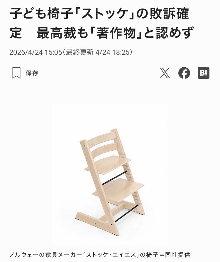 | … | 2726/04/25(土)12:16:46No.1423616974+>この椅子発売されて50年くらいのロングセラーで特許も意匠も主張できる期間切れてるから著作権で囲おうとしたねん |