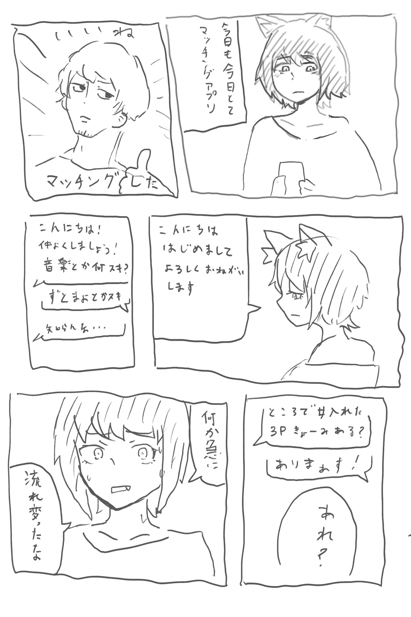 >マッチングアプリでの会話を描いた短い漫画の画像です。