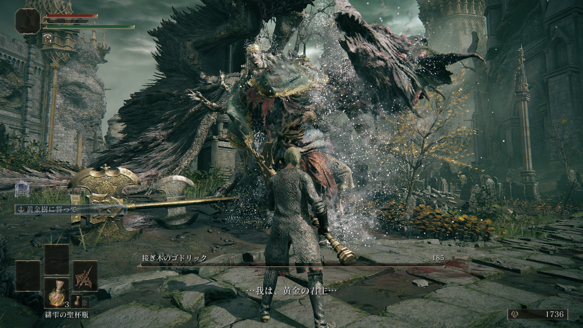 | … | 826/04/25(土)22:32:10No.1423812802+fu6600198.jpg 城をうろついている間に貯まったルーンで竜のハルバードを両手持ちできるようになったのでボスへ 接ぎ木の君主ってこいつかー |