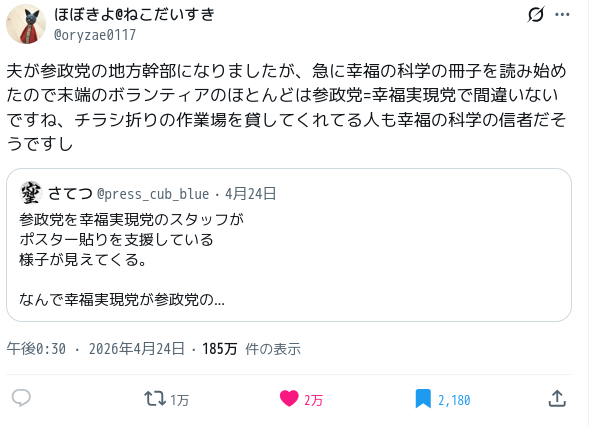 | … | 126/04/26(日)04:53:24 ID:7y7sbP4.No.1423893838+https://x.com/oryzae0117/status/2047654387728925145 |