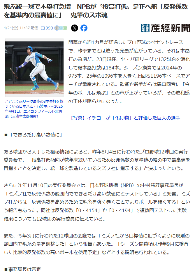 | … | 226/04/26(日)06:20:57No.1423897917+>ボールを変えるのはまあいいとしてもなんで毎回秘密裏に変更するんや? |