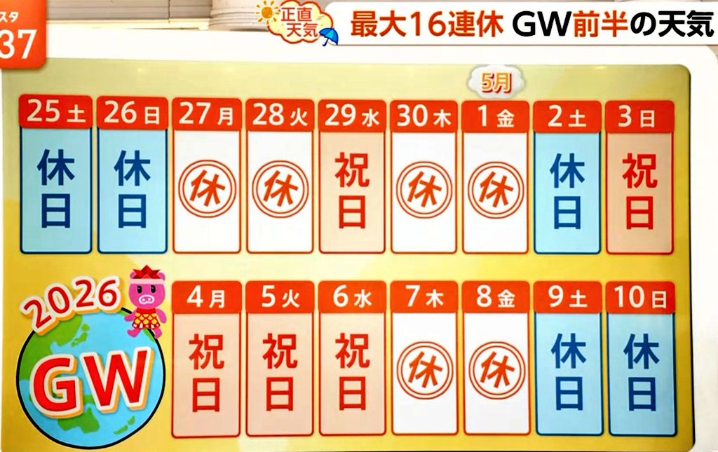 | … | 5026/04/26(日)10:31:06No.1423941427+6日が休みにならないような所もあるしな… |