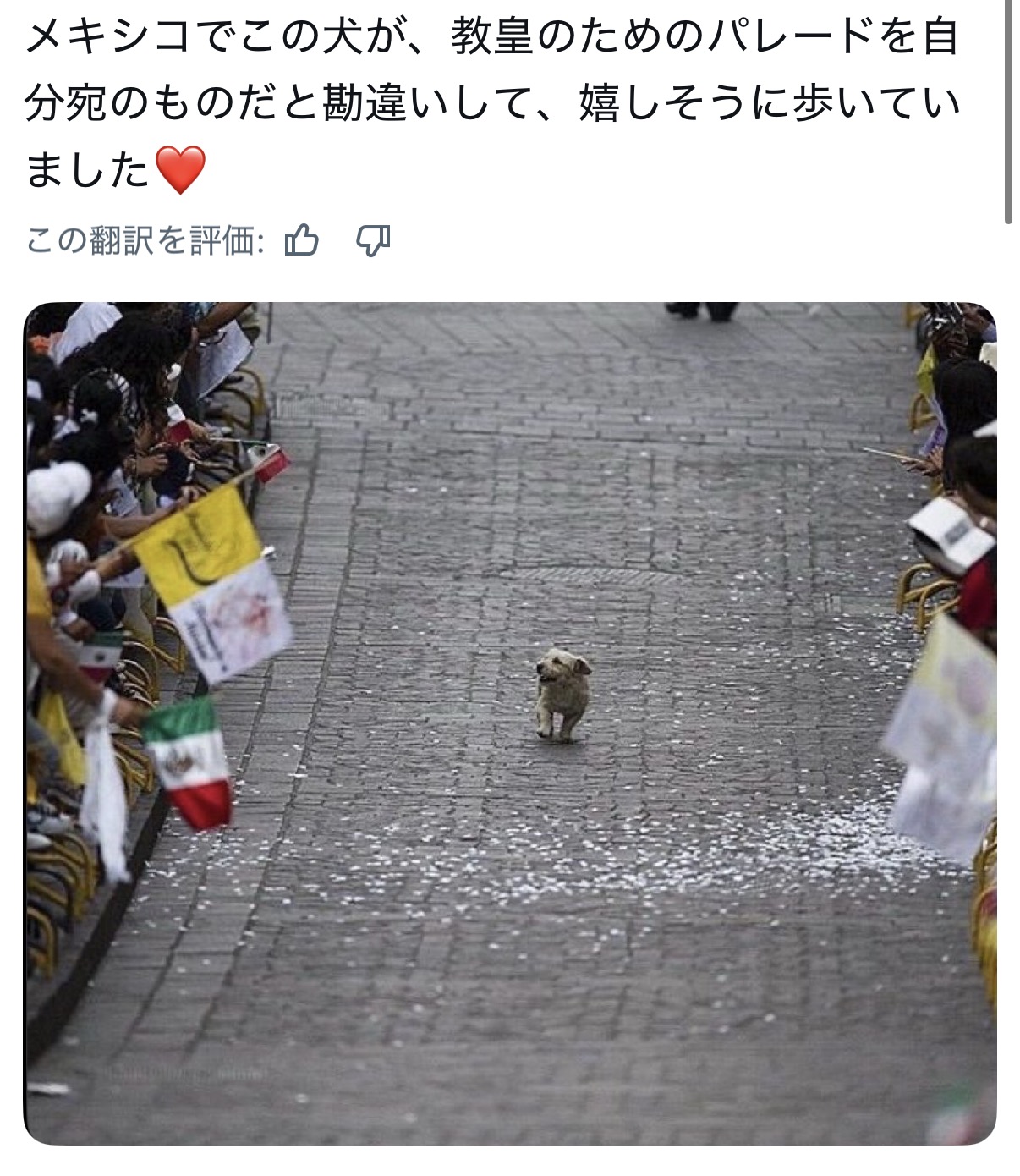 | … | 5126/04/26(日)12:47:21No.1423976449+流石に建物内で恭しく行われるものでもないパレードで動物の乱入者がいてどうこうなるような宗教はないだろ |